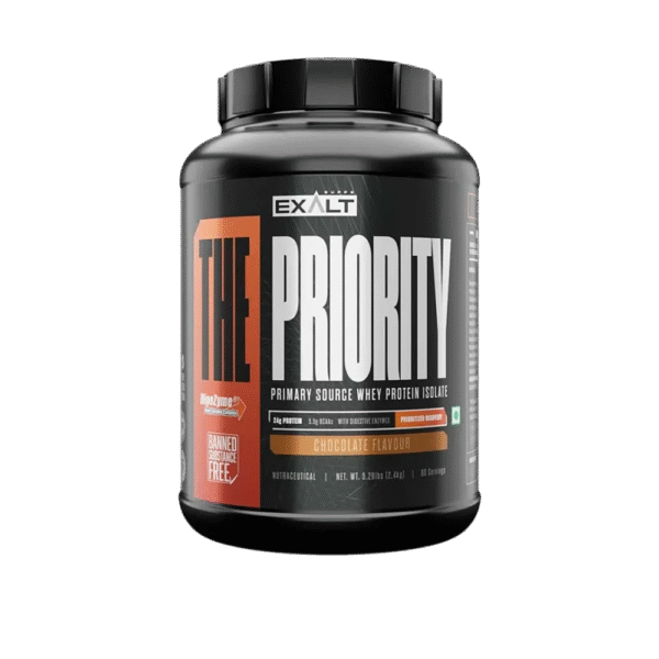 “Indulge your taste buds while fueling your fitness journey with Exalts Priority Whey Protein in Chocolate Flavor. Crafted to elevate your performance, each serving delivers 80 servings of premium quality whey protein, ensuring you get the protein your muscles need to recover and grow. With a rich chocolate taste that satisfies cravings without compromising on nutrition, prioritize your health and fitness goals with every delicious scoop of Exalts The Priority Whey Protein.”