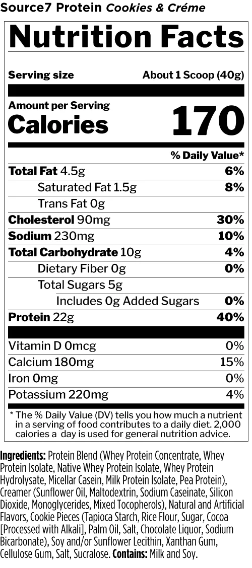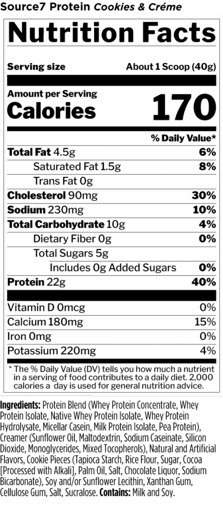 Made from a 22g combination of 7 different fast-acting to delayed-release protein sources, Source 7 is as delicious as it is versatile.†